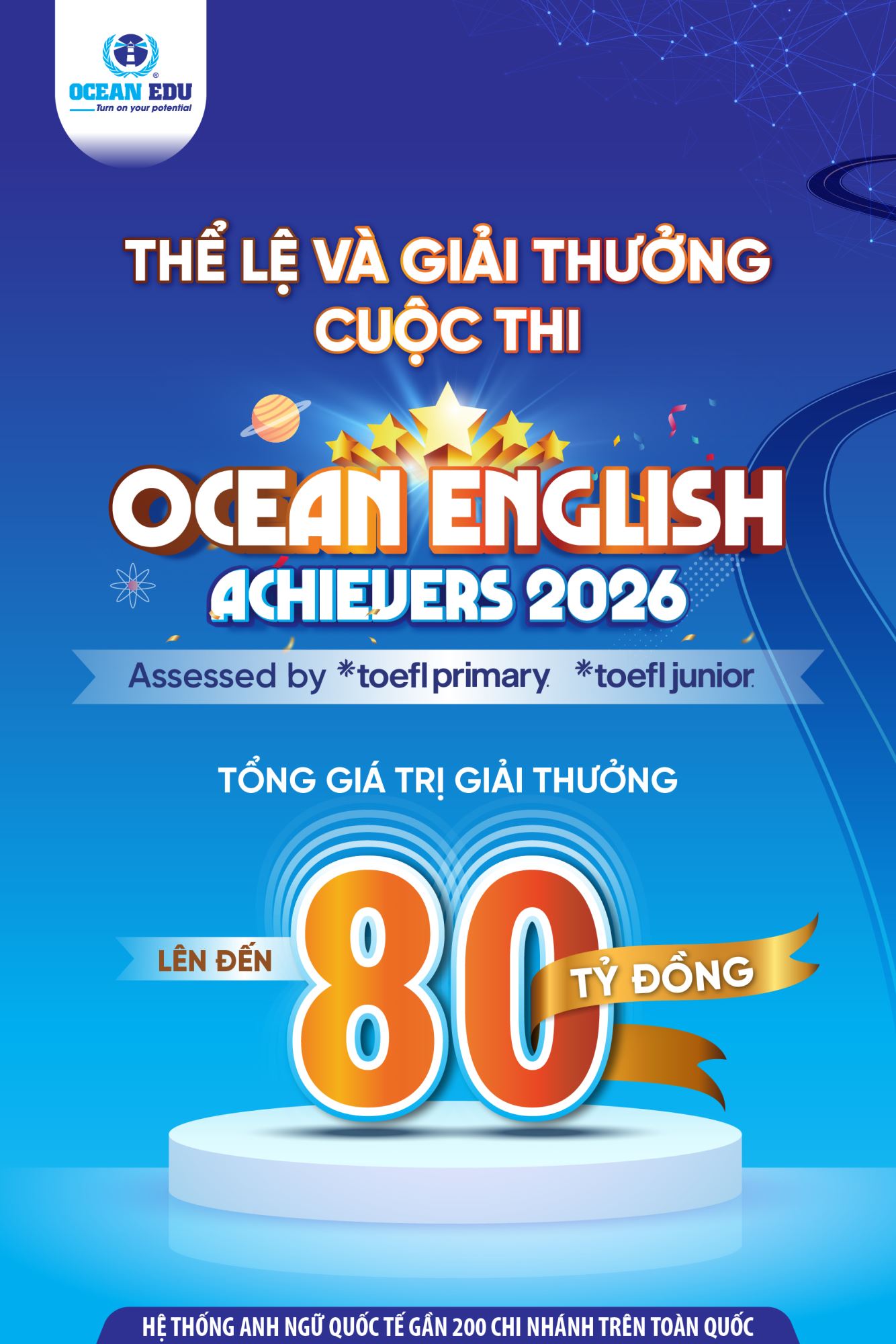 Hãy đăng ký tham gia ngay hôm nay để khẳng định khả năng, bứt phá giới hạn và tiến gần hơn đến giấc mơ vươn tầm thế giới. Ocean English Achiever 2026 – Nơi tài năng tỏa sáng và tương lai bắt đầu!