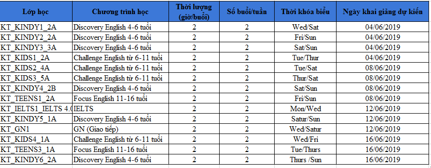 Xem tiếpOcean Edu Kon Tum thông báo đến quý phụ huynh lịch khai giảng các lớp tiếng Anh dự kiến của Ocean Edu Kon Tum trong tháng 12 năm 2019.