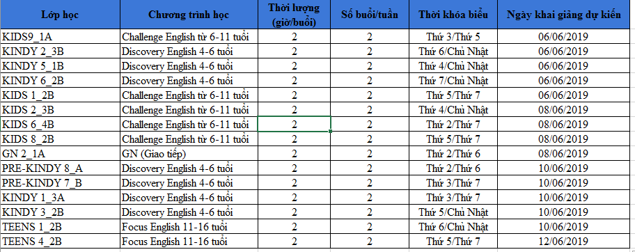 Xem tiếpOcean Edu Lạng Sơn thông báo đến quý phụ huynh lịch khai giảng các lớp tiếng Anh dự kiến của Ocean Edu Lạng Sơn trong tháng 10 năm 2019.