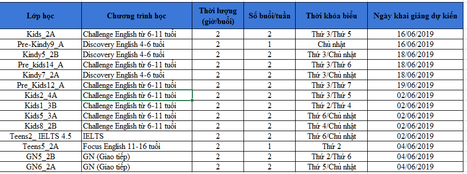 Xem tiếpOcean Edu Phố Nối thông báo đến quý phụ huynh lịch khai giảng các lớp tiếng Anh dự kiến của Ocean Edu Phố Nối trong tháng 09 năm 2019.