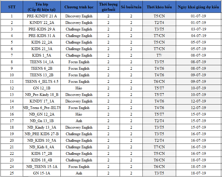 Ocean Edu Buôn Ma Thuật thông báo đến quý phụ huynh lịch khai giảng các lớp tiếng Anh dự kiến của Ocean Edu Buôn Ma Thuật trong tháng 8 năm 2022.