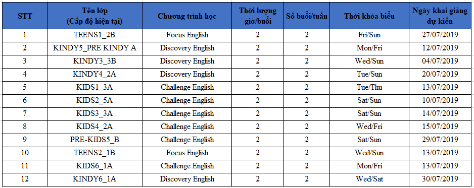 Ocean Edu Buôn Ma Thuật thông báo đến quý phụ huynh lịch khai giảng các lớp tiếng Anh dự kiến của Ocean Edu Buôn Ma Thuật trong tháng 8 năm 2022.