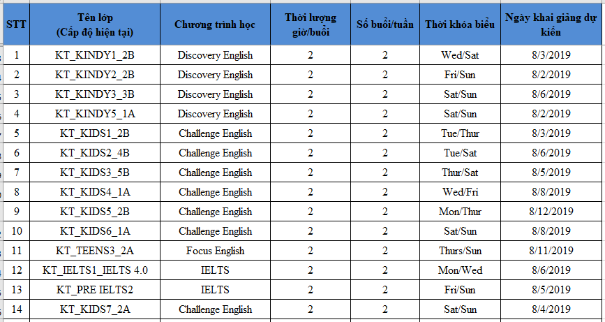 Ocean Edu Buôn Ma Thuật thông báo đến quý phụ huynh lịch khai giảng các lớp tiếng Anh dự kiến của Ocean Edu Buôn Ma Thuật trong tháng 8 năm 2022.