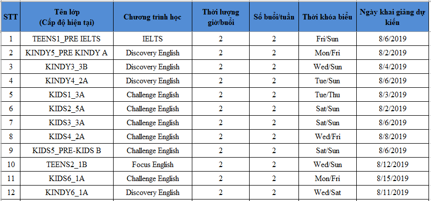 Ocean Edu Buôn Ma Thuật thông báo đến quý phụ huynh lịch khai giảng các lớp tiếng Anh dự kiến của Ocean Edu Buôn Ma Thuật trong tháng 8 năm 2022.