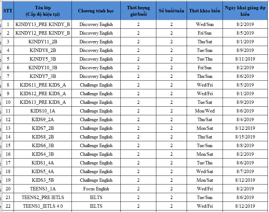 Ocean Edu Buôn Ma Thuật thông báo đến quý phụ huynh lịch khai giảng các lớp tiếng Anh dự kiến của Ocean Edu Buôn Ma Thuật trong tháng 8 năm 2022.