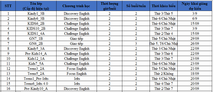 Ocean Edu Buôn Ma Thuật thông báo đến quý phụ huynh lịch khai giảng các lớp tiếng Anh dự kiến của Ocean Edu Buôn Ma Thuật trong tháng 8 năm 2022.