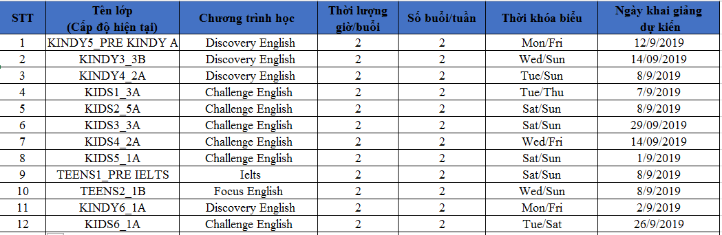 Ocean Edu Buôn Ma Thuật thông báo đến quý phụ huynh lịch khai giảng các lớp tiếng Anh dự kiến của Ocean Edu Buôn Ma Thuật trong tháng 8 năm 2022.