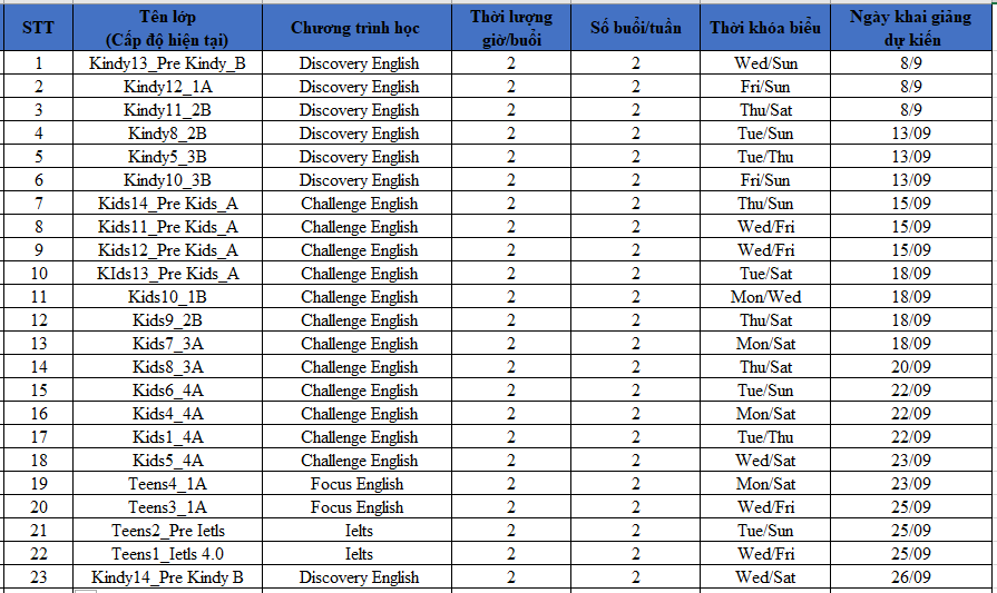 Ocean Edu Buôn Ma Thuật thông báo đến quý phụ huynh lịch khai giảng các lớp tiếng Anh dự kiến của Ocean Edu Buôn Ma Thuật trong tháng 8 năm 2022.