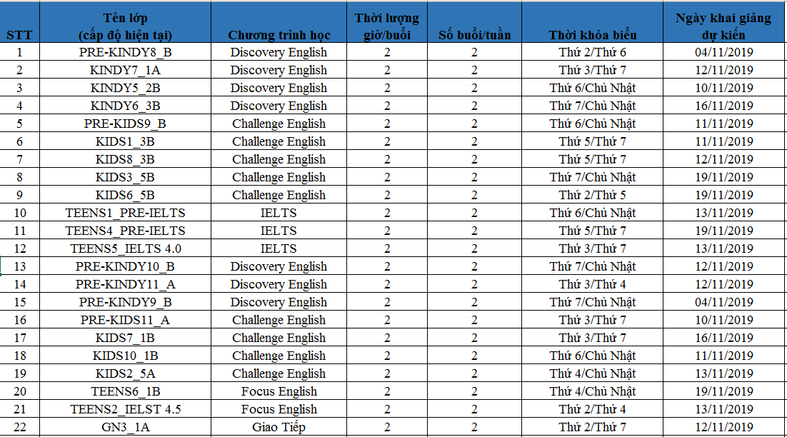 Ocean Edu Buôn Ma Thuật thông báo đến quý phụ huynh lịch khai giảng các lớp tiếng Anh dự kiến của Ocean Edu Buôn Ma Thuật trong tháng 8 năm 2022.