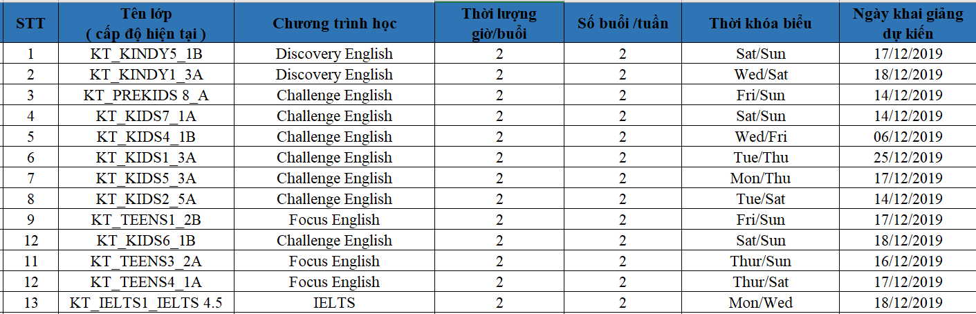 Ocean Edu Buôn Ma Thuật thông báo đến quý phụ huynh lịch khai giảng các lớp tiếng Anh dự kiến của Ocean Edu Buôn Ma Thuật trong tháng 8 năm 2022.